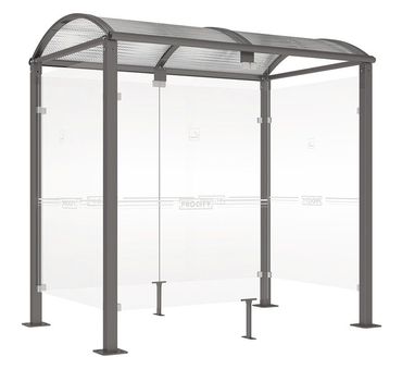 - Raucherunterstand mit Rundbogen-Dach und Verkleidungen aus Glas
