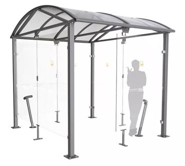 - Raucherunterstand mit Rundbogen-Dach und Verkleidungen aus Glas