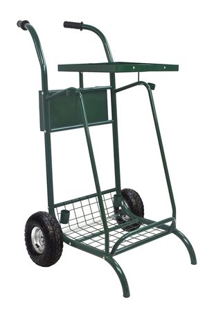 Dieser Reinigungswagen für den Außenbereich mit offener Müllsackhalterung für zwei Abfallarten verfügt über eine stabile Struktur aus pulverbeschichtetem Stahl in Moosgrün. Mithilfe robuster Klemmbügel lassen sich die Müllsäcke sicher fixieren und unkompliziert austauschen. Seitliche Halterungen bieten Platz für Besen, Schaufeln oder ähnliches Arbeitsgerät. Eine zusätzliche Ablagefläche eignet sich für kleines Werkzeug und weiteres Zubehör. Der Wagen ist wahlweise mit Vollgummirädern oder Luftreifen ausgestattet.