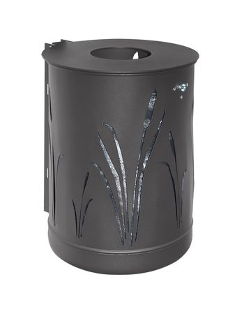 Der optisch ansprechende Rundbehälter mit Schilfmotiv bringt ein Stück Natur in die Stadt. Dieser Stand-Abfallbehälter zeichnet sich durch seinen grafisch modernen Laserschnitt und seine robuste Bauweise aus. Mit einem Fassungsvermögen von etwa 50L ist er in zwei Varianten erhältlich: zum Einbetonieren sowie für Wand- und Pfostenbefestigung.