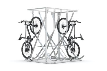 Hier parken Fahrräder im komfortablen Radabstand von 350 mm schräg nach oben, um wertvollen Platz zu sparen. Die witterungsfeste Stahlkonstruktion eignet sich für den Einsatz innen wie außen, in Garagen oder an Parkplätzen, und ist in jedem Fall einfach zu montieren. Der Schräghochparker ETA dank eines umlaufenden Grundrahmens frei aufgestellt werden kann und dadurch auch in zweiseitiger Ausführung erhältlich ist. Alle eignen sich für Reifenbreiten bis 60 mm. An den Führungsschienen lassen sich Schlösser befestigen. Farbige Ausführungen nach RAL sind optional erhältlich.