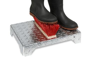 Dieser robuste Schuhreiniger aus feuerverzinktem Stahlblech mit Bürste ist ideal für den Einsatz in Industrie, Handwerk, Landwirtschaft und Baugewerbe. Die griffige Oberfläche aus Tränenblech sorgt für einen sicheren Stand, während Sie den groben Schmutz vom Schuh entfernen. Die Bürste ist austauschbar, sodass dieser Schuhreiniger lange im Einsatz bleiben kann.