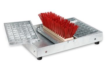 Dieser hochwertige und robuste Schuhreiniger mit feuerverzinktem Gitterrost ist ideal für den Einsatz in Industrie, Handwerk, Landwirtschaft und Baugewerbe. Der stabile Gitterrost sorgt für Grip beim Stehen auf dem Schuhreiniger und ermöglicht es, Schmutz direkt von den Schuhsohlen abzustreifen. Dabei fällt der Dreck zuverlässig durch den herausnehmbaren Rost. Die hochwertige Verarbeitung und die Möglichkeit, nach intensiver Benutzung die Bürste auszutauschen, sorgen für eine lange Einsatzzeit.