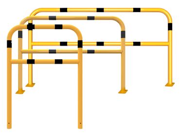 Dieser ortsfeste Schutzbügel mit Querholm aus Stahlrundrohr Ø 60 mm dient als zuverlässiger Sicherheitsschutz für Gefahrenzonen auf dem Betriebsgelände, in Produktionshallen, Lagern uvm. Er ist feuerverzinkt und pulverbeschichtet in Gelb mit schwarzen Warnstreifen für gute Sichtbarkeit und klare Signalwirkung – und standardmäßig erhältlich in drei Breiten: 1000 mm, 1500 mm oder 2000 mm. Erhältlich sind Ausführungen zum Einbetonieren oder mit Bodenplatten zum Aufdübeln.