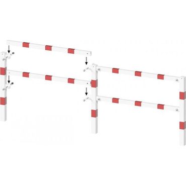 Dieses Geländersystem kann als Sicherheitsgeländer im Gefahrenbereich, zum Absichern von Bürgersteigen, Trennen von Fahrbahnen und Fußwegen und etc. eingesetzt werden. Es ist aus einem Vierkant-Stahlrohr 70 x 70 mm gefertigt und ist variabel zusammensetzbar. Die Querholme (separat erhältlich) werden einfach in die Aufnahmelaschen der Standpfosten eingelegt und mittels Schrauben fixiert. Ohne Verschraubung ist das System auch als temporäre Absicherung nutzbar. Die Höhe Überflur liegt bei 1.000 mm. Das Geländersystem ist zum Einbetonieren oder zum Aufdübeln mit Bodenplatte lieferbar. Das Schutzgeländer ist wahlweise als feuerverzinkt oder feuerverzinkt und weiß pulverbeschichtet mit rot reflektierenden Leuchtstreifen erhältlich.