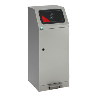 Der Wertstoffsammler verfügt über eine vom TÜV zertifizierte Selbstlöschfunktion im Brandfall. Das Fußpedal ermöglicht eine hygienische Entsorgung, so dass Sie mit dem Abfall nicht in Berührung kommen. Der geschlossene Behälter unterbindet zudem eine unangenehme Geruchsausbreitung. Die Entleerung erfolgt über die Frontöffnung der Tür mit einem Doppelbartschloss. Der Innenbehälter lässt sich durch zusätzliche Griffe einfach herausnehmen.