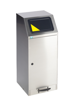 Der Wertstoffsammler verfügt über eine vom TÜV zertifizierte Selbstlöschfunktion im Brandfall. Das Fußpedal ermöglicht eine hygienische Entsorgung, so dass Sie mit dem Abfall nicht in Berührung kommen. Der geschlossene Behälter unterbindet zudem eine unangenehme Geruchsausbreitung. Die Entleerung erfolgt über die Frontöffnung der Tür mit einem Doppelbartschloss. Der Innenbehälter lässt sich durch zusätzlicher Griffe einfach herausnehmen.