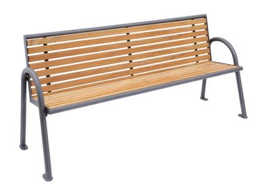 Diese Parkbank ist ideal für die moderne Stadtmöblierung. Sitzbänke sind hoch beansprucht: Daher sind unsere Holzbänke erstklassig ausgestattet. Mit einem Hartholz, das fast keine Wasseraufnahme hat. Mit einer massiven Konstruktion. Mit verzinkten Stahlteilen, die anschließend in Fassadenqualität pulverbeschichtet und lange glanzhaltig sind.