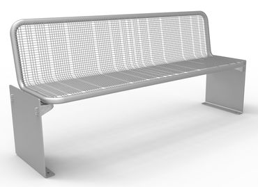 - Sitzfläche mit Rückenlehne durchgehend mit Drahtgitter und Rundrohr; Rohrdurchmesser 38 mm, Rohrwandungsstärke 2,5 mm, Drahtstärke 3,3 mm