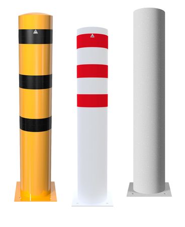 Dieser Stahlrohrpoller Ø 273 mm zum Aufdübeln ist in mehreren Farbausführungen erhältlich – feuerverzinkt und unbeschichtet sowie feuerverzinkt und beschichtet in Weiß/Rot für die Kennzeichnung im Verkehr und in Gelb/Schwarz für den Werkschutz, für Lager- und Produktionsbereiche. Die Gesamthöhe ist 1500 mm. Ebenso sind Ausführungen mit unterschiedlichen Stahlkappen erhältlich: aufgeschweißte Stahlkappe oder Stahlkappe mit Betonanker.
