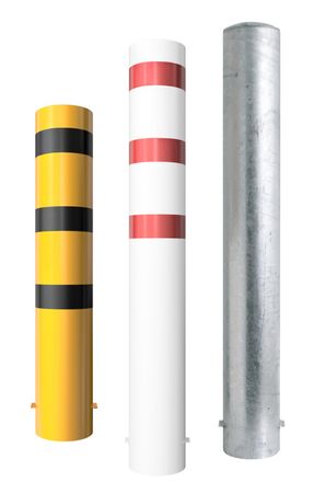 Dieser Stahlrohrpoller Ø 273 mm zum Einbetonieren ist in drei Farbausführungen für verschiedene Zwecke erhältlich – feuerverzinkt und unbeschichtet sowie zusätzlich in Weiß beschichtet und mit roten reflektierenden Streifen für die Kennzeichnung im Verkehr und in Gelb mit schwarzen Warnstreifen für den Werkschutz, für Produktionsbereiche, Lager und Logistik. Die Gesamthöhe ist wahlweise 1500 mm oder 2000 mm. Ebenso sind Ausführungen mit unterschiedlichen Stahlkappen erhältlich: aufgeschweißte Stahlkappe oder Stahlkappe mit Betonanker.