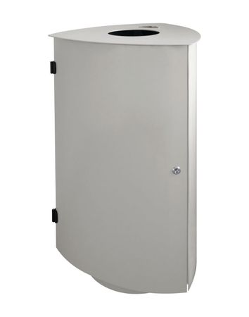 Dieser Standabfallbehälter mit Ascher ist aus feuerverzinktem Stahl gefertigt und dadurch besonders witterungsbeständig. Die Oberfläche ist zusätzlich in einer der attraktiven Standard-Farben pulverbeschichtet. Der Einwurf des Abfalls erfolgt über eine runde Öffnung in der Deckelscheibe auf der Oberseite mit ca. 200 mm Durchmesser und fällt in einen praktischen Innenbehälter mit 2 Fallgriffen. Zigarettenkippen können separat abgestreift und eingeworfen werden. Die Entleerung des Innenbehälters erfolgt durch eine Tür, die mit einem Dreikantschloss ausgestattet ist und sich so sichern lässt. Für stabilen Stand wird der Abfallbehälter auf dem Untergrund aufgeschraubt.
