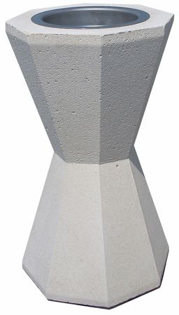 Optisch ansprechend und zeitlos präsentiert sich dieser Aschenbecher aus Beton mit seinem Design in Form einer Sanduhr mit achteckiger Grundfläche. Der runde Aschereinsatz aus Edelstahl verfügt über ein Volumen von ca. 1,5 Litern, was in etwa 900 Zigarettenstummeln entspricht. Durch seine Standfestigkeit und sein Fassungsvermögen ist dieser Behälter ideal für stark frequentierte Bereiche.
