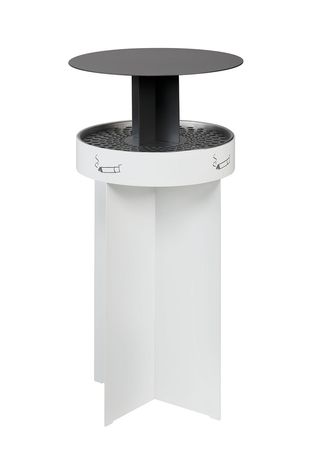 Dieser Standascher ist in zwei attraktiven Ausführungen erhältlich – als offene Ausführung zum Einsatz für überdachte Bereiche zur Befüllung mit Quarzsand und mit Sandsieb sowie als Ausführung mit zusätzlichem abschließbaren Aufsatz mit Schutzdach und Abstreifblech, die ohne Quarzsand verwendet wird. Der Ascher besteht aus massiven, verzinkten Stahlteilen. Der Korpus ist mit einer langlebigen weißen Pulverbeschichtung versehen, der zusätzliche Aufsatz mit Schutzdach ist in Eisenglimmer DB 703 beschichtet.