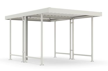 MULTI ist ein Multitalent unter den Materialüberdachungen. Dieses modulare Überdachungssystem besticht durch seine Einfachheit, sein zeitloses Design und sein praktisches System von drei möglichen Grundeinheiten und einem Erweiterungsmodul. Optional kann MULTI auch flexibel mit Seitenwänden erweitert werden. Ob Fahrradüberdachung, Müllplatzeinhausung, als Überdachung für Leergut oder Lagerware – mit MULTI lassen sich vielfältige Überdachungskonstruktionen realisieren.