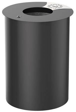 Eine hochwertige Vier-Punkte-Verriegelung des robusten und rostfreien Edelstahlbehälters am Boden sorgt für festen Halt auch wenn jemand versehentlich gegen den Abfalleimer stößt. Der zylindrische Behälter besteht aus einem Teil, oben ist ein Deckel mit leichtem Überhang und einer kleineren Öffnung in der Mitte montiert. Dieser lässt sich mit einem einfachen Drei-Seiten-Schlüssel öffnen. Eingeprägt in den Deckel ist ein farblich abgesetzter Bereich. Dieser signalisiert einfach verständlich, dass hier Zigaretten ausgedrückt werden können.