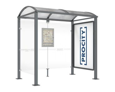 Die Wartehalle MALAGA mit Rundbogendach aus Polycarbonat und Verkleidungen aus Einscheiben-Sicherheitsglas ist eine schlichte Überdachung für Bushaltestellen und andere Haltestellen im öffentlichen Nahverkehr. Sie ist Teil einer Serie mit weiteren Überdachungen im selben Design.