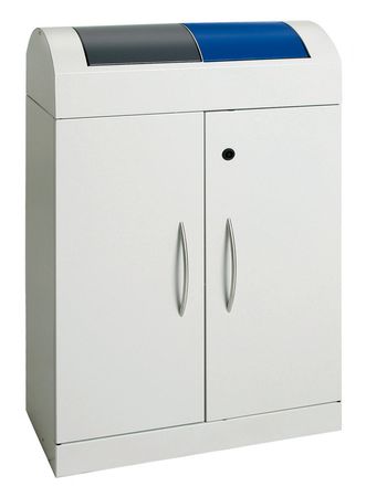 Dieser kompakte Wertstoffsammler überzeugt durch hochwertige Materialien und ein durchdachtes Design – ideal für Büros, öffentliche Einrichtungen oder stilvolle Innenräume. Gefertigt aus verzinktem Qualitätsstahlblech und veredelt mit einer widerstandsfähigen, strukturierten Pulverbeschichtung, ist er besonders robust, schlag- und kratzfest. Farbige, selbstschließende Pendelklappen ermöglichen eine komfortable Handhabung und sind feuer- und geruchshemmend. Im Inneren bieten zwei verzinkte Stahleinsätze mit je 45 Litern Volumen ausreichend Platz für eine effiziente Abfalltrennung. Die Flügeltüren mit Edelstahltürgriffen lassen sich über ein Vierkantschloss sicher verschließen. Zwei verstellbare Stellfüße an der Vorderseite gewährleisten stabilen Stand – auch auf unebenem Boden. Außerdem ist der Behälter als nicht brennbar eingestuft (DIN 4102, Brandschutzklasse A1).