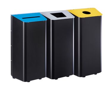 Für eine klare und übersichtliche Abfalltrennung sorgt der farbige Deckel mit Einwurföffnung – angepasst an die jeweilige Abfallart. Der Behälter mit blauem Deckel ist beispielsweise für Papierabfälle ausgelegt und daher mit einem Schlitz versehen.