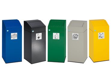 - Ausgerüstet sind die Wertstoffsammler mit einer selbstschließenden, in Gerätefarbe beschichteten Einwurfklappe (geruchshemmend)