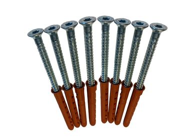 - 8 verzinkten Schrauben 8 x 80 mm mit Kunststoffdübeln Ø 10 mm (Bit T 40)