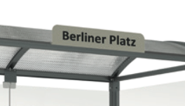 Haltestellenschild (ohne Aufdruck) zur Montage am Dach der Wartehallen der Serien MALAGA und LISSABON.