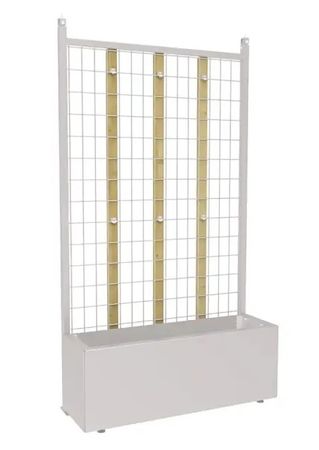 Diese Holzleisten ergänzen den modularen Sichtschutz mit Pflanzbehältern und Rankhilfe für selektierte Überdachungen wie Wartehallen und die modulare Pergola.