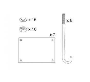 Lieferumfang Montage-Set: Schablonen, Bodenanker, Muttern und Unterlegscheiben
