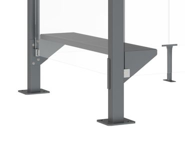 Diese Sitzbank aus pulverbeschichtetem Stahl ist ein Zubehör speziell für den Raucherunterstand MALAGA in der schmaleren Ausführung und den Raucherunterstand MALABO. Sie kann auch als Ablagefläche genutzt werden. Das Element wird beim Aufbau der Überdachung direkt an der Struktur montiert – an der Seite, vor einer der Seitenverkleidungen, d.h. an der schmalen Seite der Überdachung und nicht vor der Rückwandverkleidung wie die Standlehne in Form einer Querstrebe.