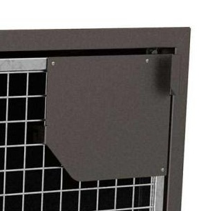 Dieses Stahlblech ist ein Zubehör zur Fahrradbox mit Drahtgittertüren und zwei getrennten Stellplätzen, die sich modular erweitern lässt. Diese Türverkleidung wird oben außen vor dem kleinen Griff an der Drahtgittertür befestigt. Als Standard wird dieses Zubehör in der Farbe der dazugehörigen Fahrradbox beschichtet.